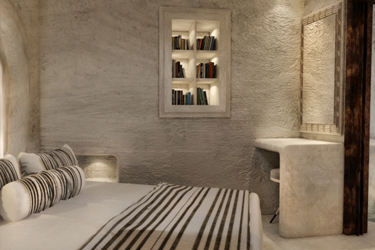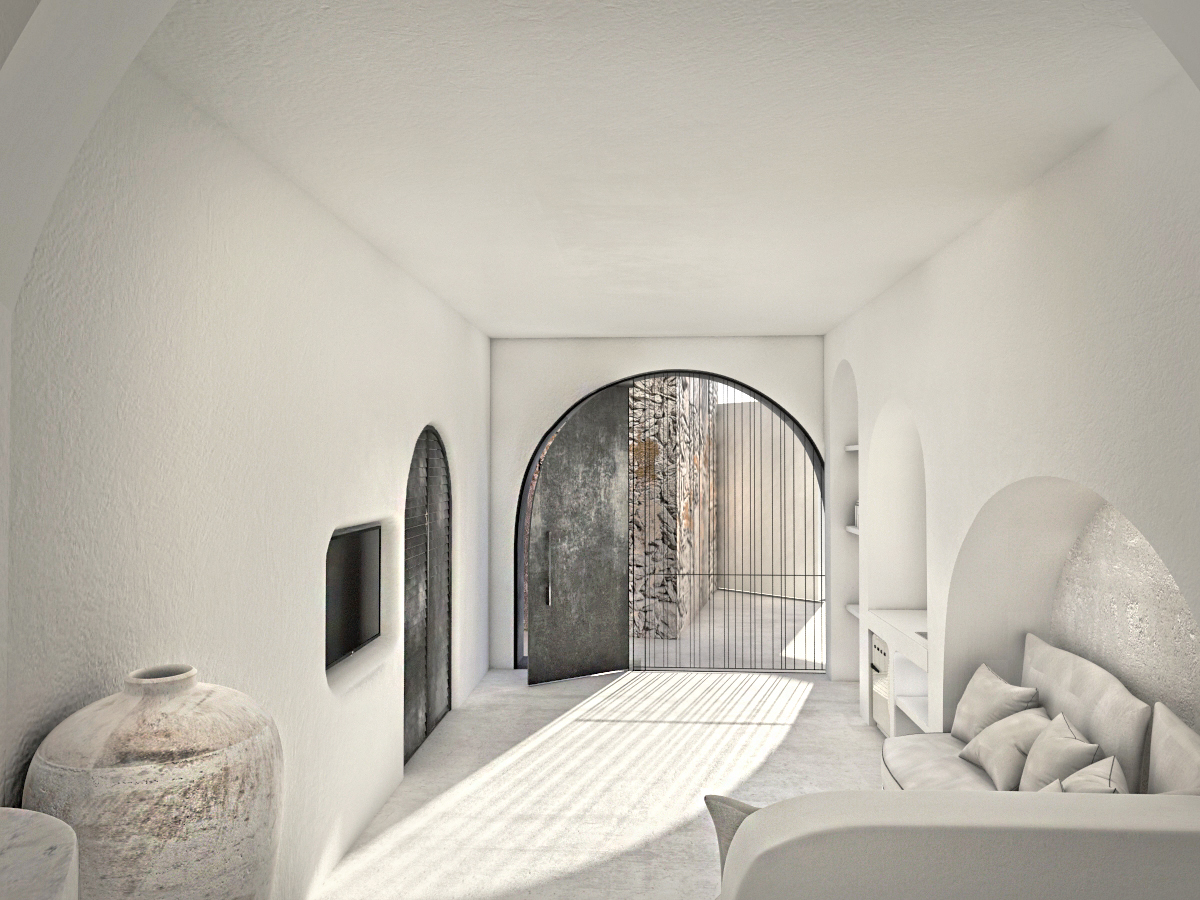 1830. The Santorinean family Sigalas builds a sheepfold hewn in the rock, in the settlement of Karterados in the center of Fira, to hide their animals when pirates raided the island. Forty-seven years later, the cave is converted into a home to house the large family with the children and grandchildren who expected to be given pancakes with sugar every night. One and a half centuries later, the home that remains today a home, near that a separate place for the goats, the grandmother’s house and a canava, the family winery where the year’s crop was stoically aging in oak barrels, were converted into a luxurious, intimate lodge with three suites: Canava (= winery), Eutopia (=seeking of the best possible world), and Lala (=grandmother in the Santorinean dialect). A conversion that paid meticulous attention to preserve the original character of the complex.