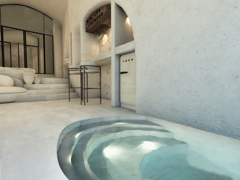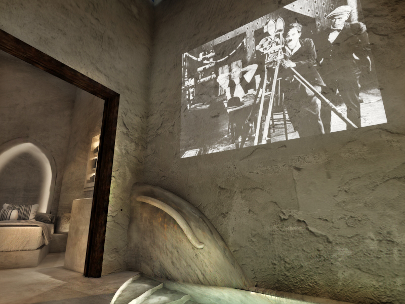 The jacuzzi pool, along with the private cinema right above the jacuzzi of the Lala Suite, uniquely complement the hospitality by creating the transcendent: One of the most unique cinemas in Santorini and around the world that exists in the privacy of a room. Swim in the tranquil waters of your jacuzzi pool, just below your private cinema, and enjoy everything that dreams cannot dream.
