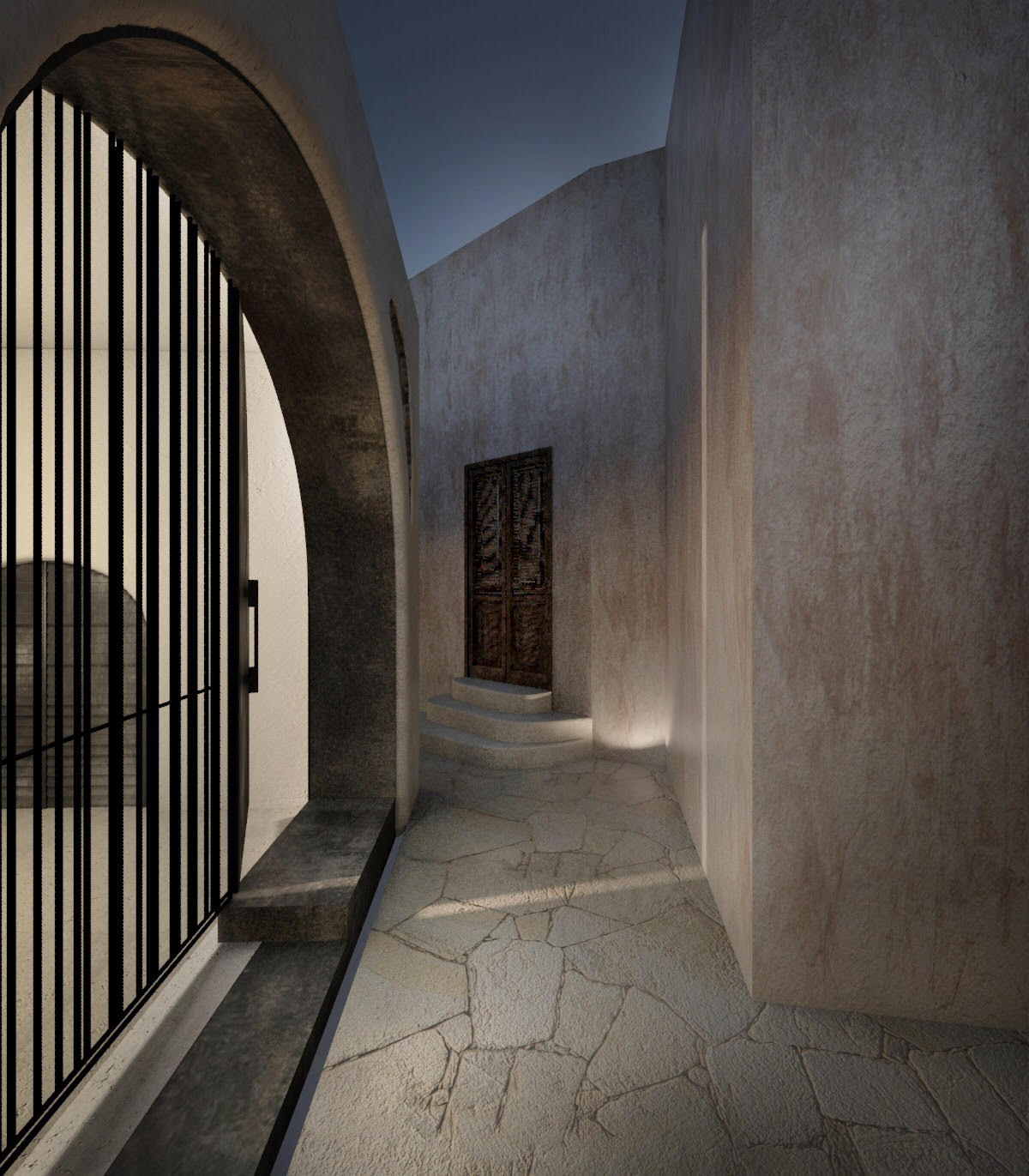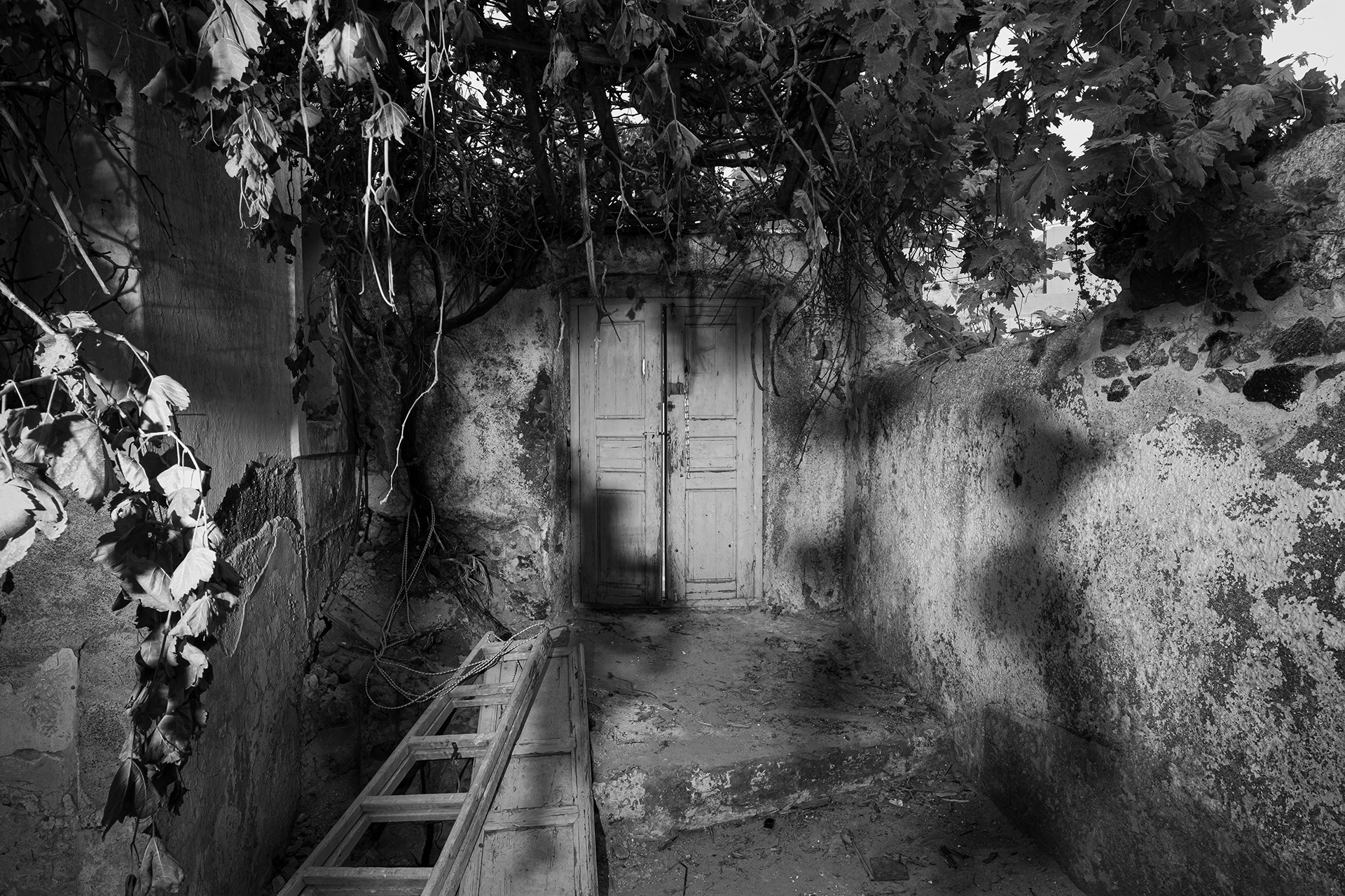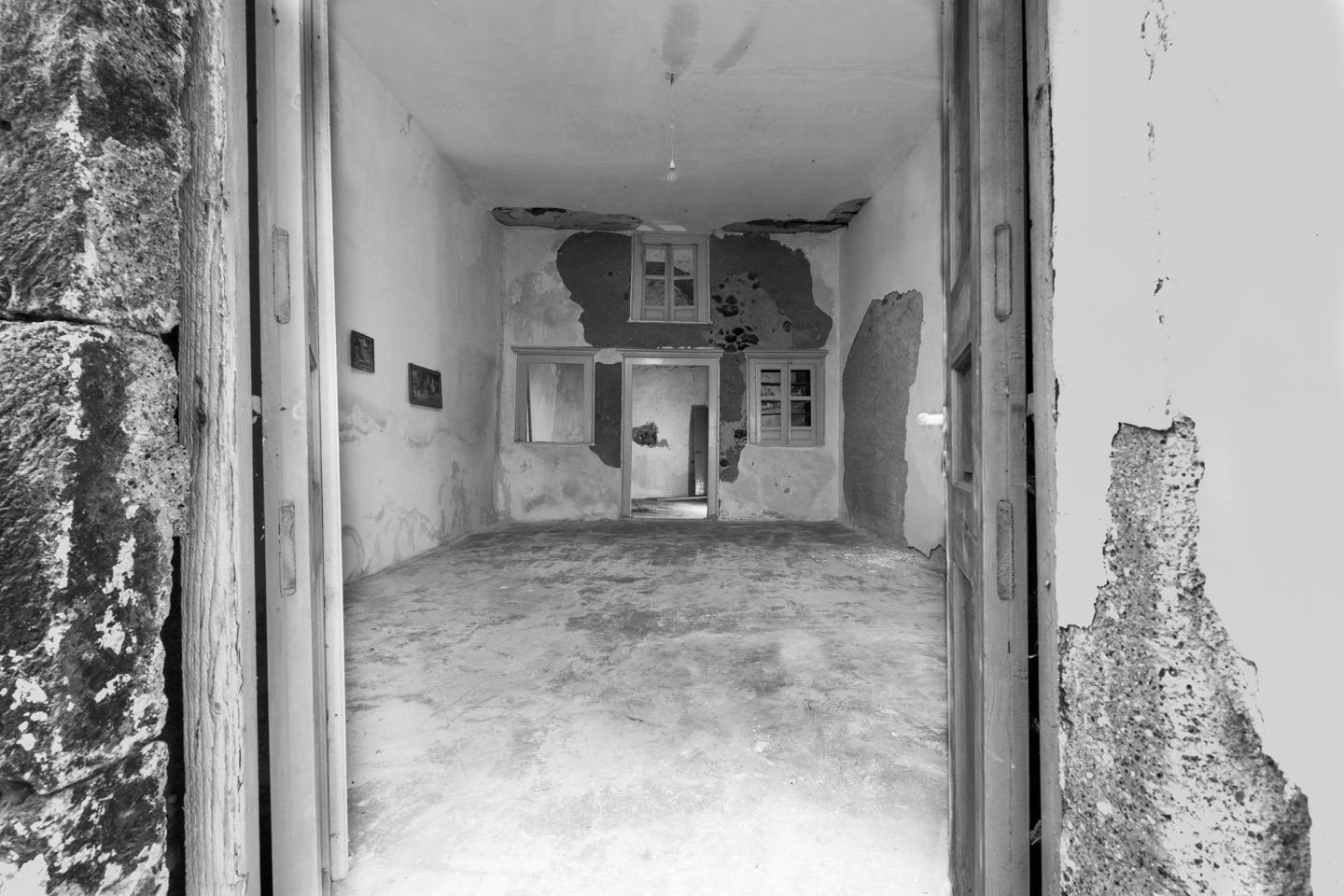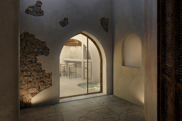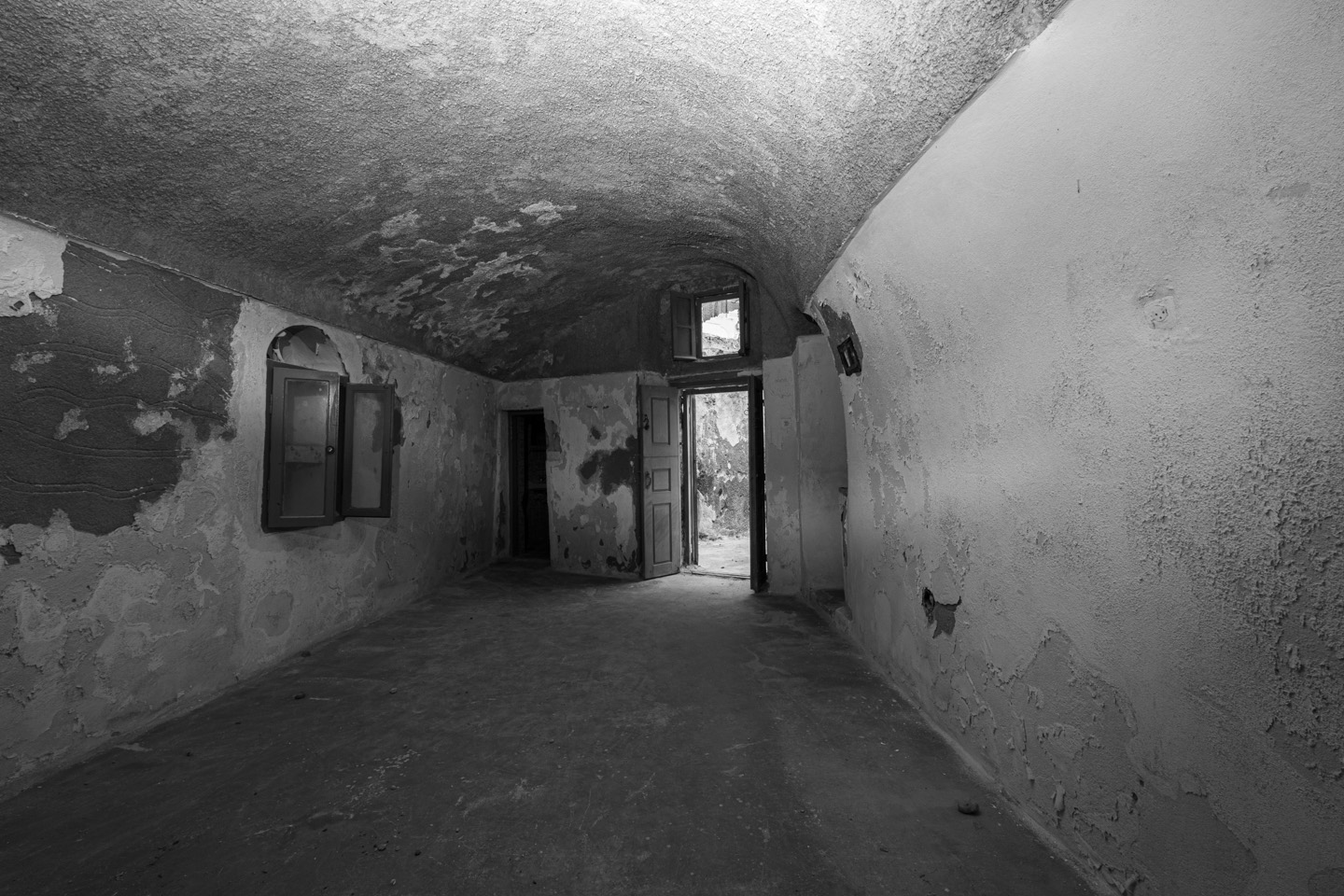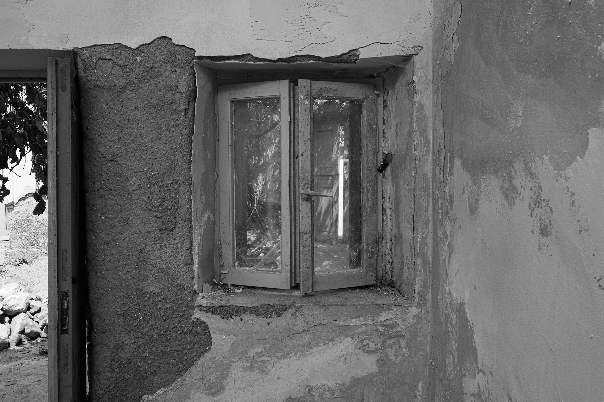 1956, the island's powerful earthquake rocks the house and the family receives grant money from the state for restoration and the creation of an additional, new home adjacent to the cave house. The rebuilding process commences in 1964 when all the family members, from the father to the youngest grandchild, go to the beaches of Santorini. There, they collect tiny sea pebbles and remodel with them the former sheepfold into a home, maintaining the small space for the animals in the caves and putting them in at night. This material, the pebbles of the sea, in combination with the theraic earth and the porcelain, provides the home with static strength and geometric stability. It is the same building material, the same soil, with which the Suez Canal was built.