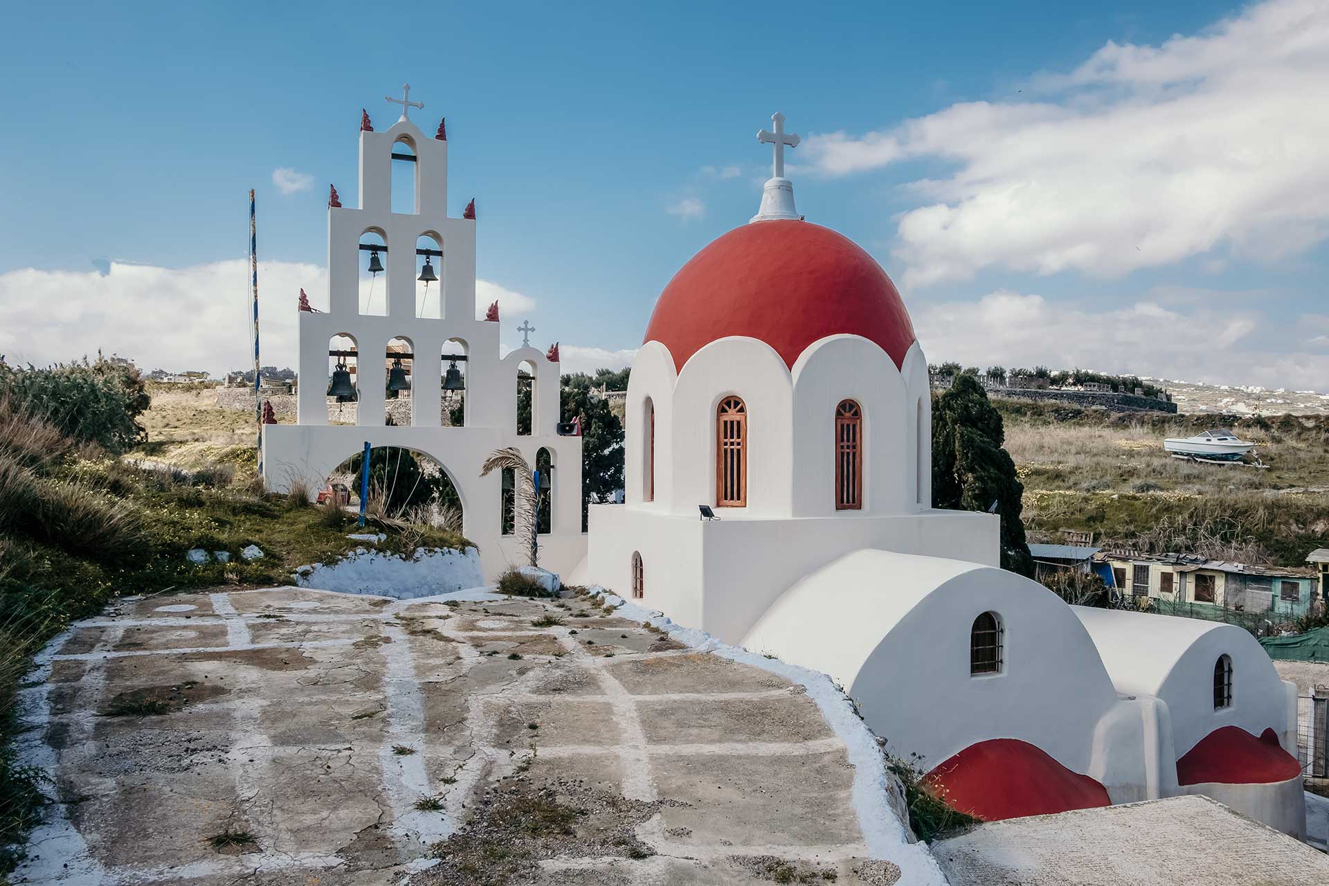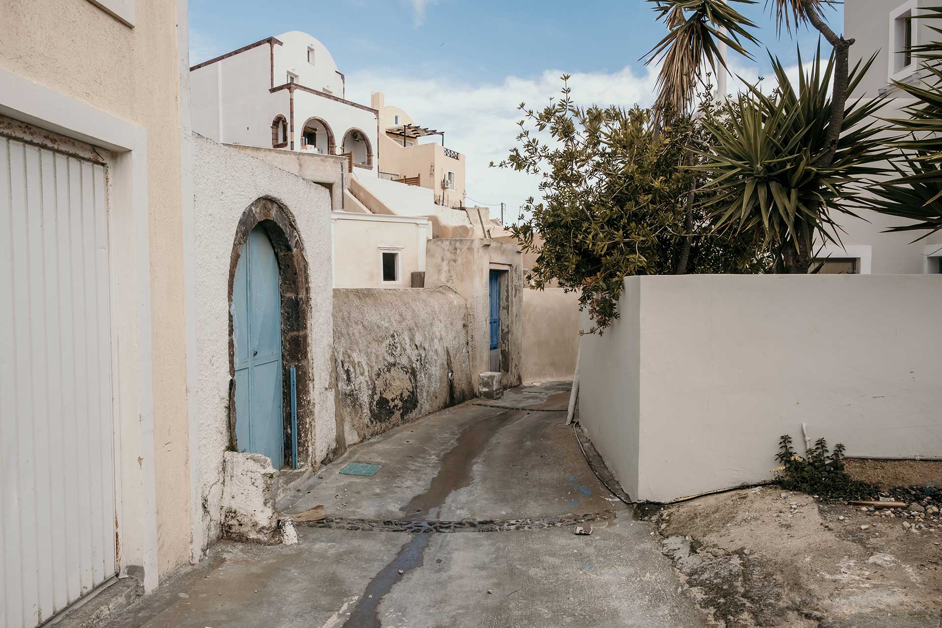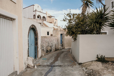 In the most northwestern hamlet of the caldera, where all the postcards of the world get their theme and image, houses perched on the brink of the volcanic cliff above the Aegean Sea become the stuff of dreams. Sometimes rock-hewn buildings and cave houses with bathrooms outside the main corpus of the house, and always with an "alitana," a flower-bed replete with fragrant, sweet-smelling basil and honeysuckle to impregnate the atmosphere even more with intoxicating smell and love. Sometimes captains' houses with high ceilings, aristocratic décor, sophistication, and elegance reminiscent of the glory of another era when the Santorinean shipmasters ruled the seas.