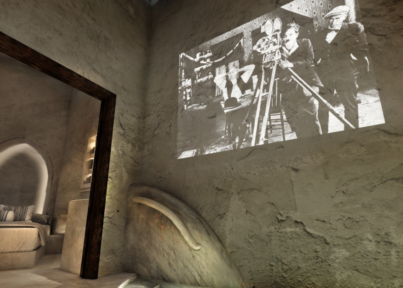 In an atmosphere of unique comfort and luxury, the bathtub and its equipment are located right next to the jacuzzi pool and face the living room to bestow the exoticism and elegance that your vacation on the island needs to have. The jacuzzi pool, along with private cinema right above the jacuzzi of the Lala Suite, uniquely complement the hospitality by creating the transcendent: One of the most unique cinemas in Santorini and around the world that exists in the privacy of a room. Grab a bottle of wine from your in-room wine-bar, place it next to the jacuzzi as you enjoy your favorite movie while swimming, and be blissfully marooned in the most cherished getaway of your life. It is here and it is now that the days are counted in dreams.